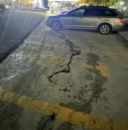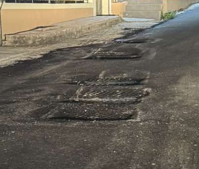 Τωρα έριξαν πίσσα και δεν πρόβλεψαν να της ανεβάσουν στην ευθεία του οδοστρώματος το εγλημα συνεχίζετε και το βασικότερο μπροστά στην είσοδο του Νοσοκομείου γιατι δεν έπεσε πίσσα ;