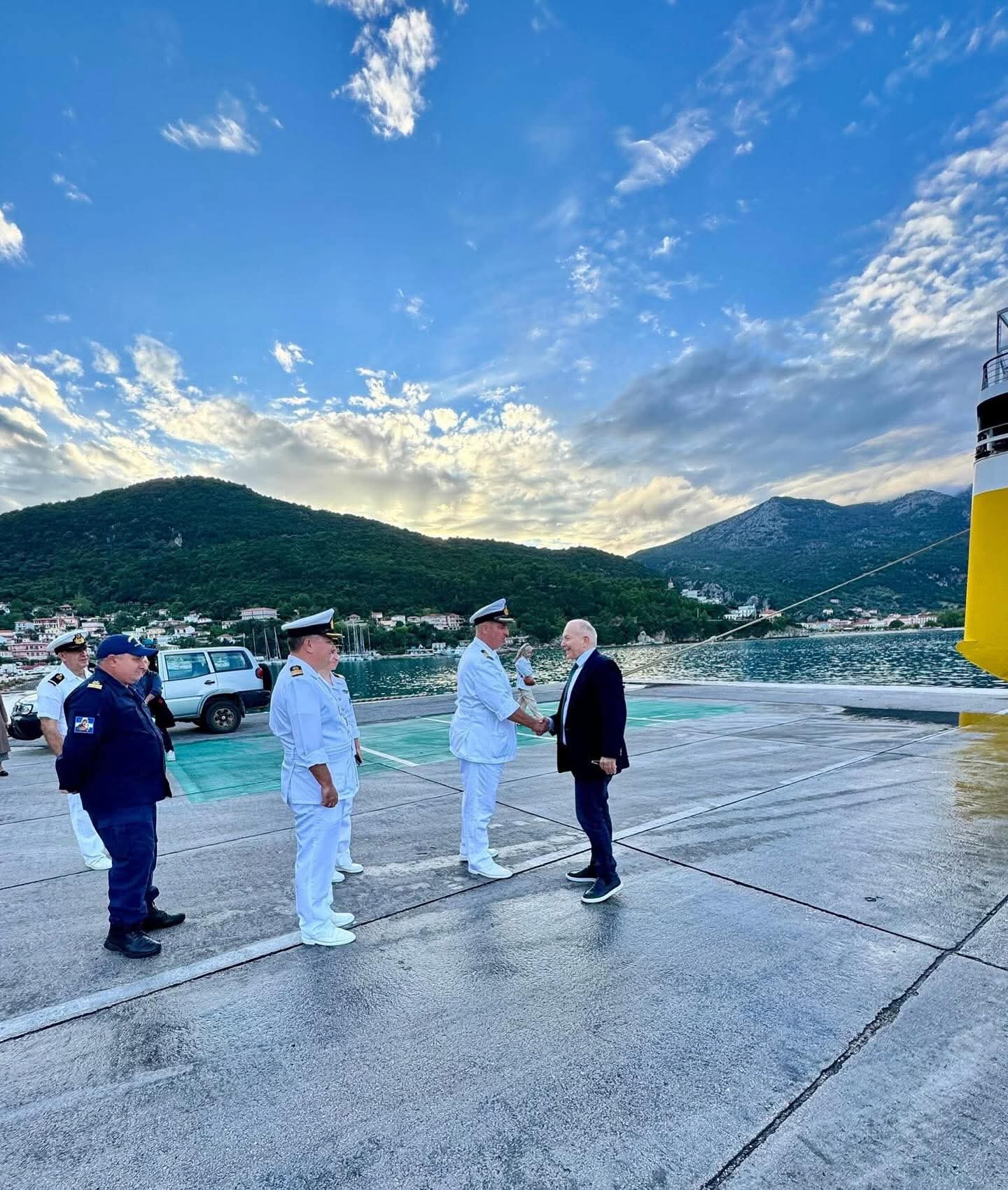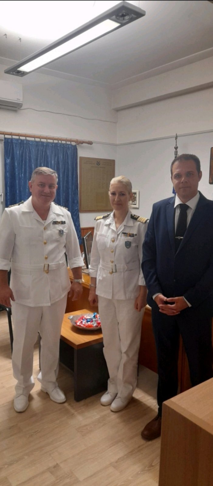 O Διοικητής της Ακαδημίας Εμπορικού Ναυτικού (ΑΕΝ) Ιονίων Νήσων, Πλοίαρχος Λ.Σ. Σιούτης Αθανάσιος, ο Περιφερειακός Διοικητής της 3ης ΠΕΔΙΛΣ Πλοίαρχος Λ.Σ. Κοριζής Κωνσταντίνος και η Λιμενάρχης Κεφαλληνίας Αντιπλοίαρχος Λ.Σ. Νταβάκου Ανθούλα.