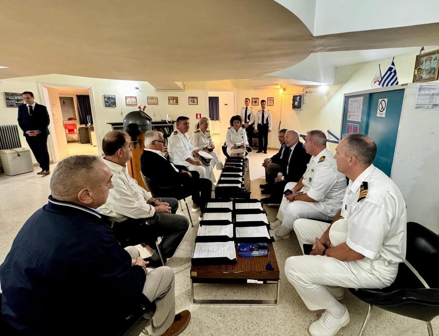 Στη συνέχεια, ο κ. Υφυπουργός επισκέφθηκε το Λιμεναρχείο Κεφαλληνίας, όπου ενημερώθηκε από τη Λιμενάρχη Αντιπλοίαρχο Λ.Σ. Νταβάκου Ανθούλα και τον Πρόεδρο της Ένωσης Προσωπικού Λ.Σ. Κεφαλονιάς και Ιθάκης (ΕΠΛΣΚΙ), Ανθυπασπιστή Λ.Σ. Χατζηγεωργίου Νικόλαο, για τα υπηρεσιακά ζητήματα, την υποστελέχωση των Υπηρεσιών και το κτηριακό πρόβλημα του Λιμεναρχείου.