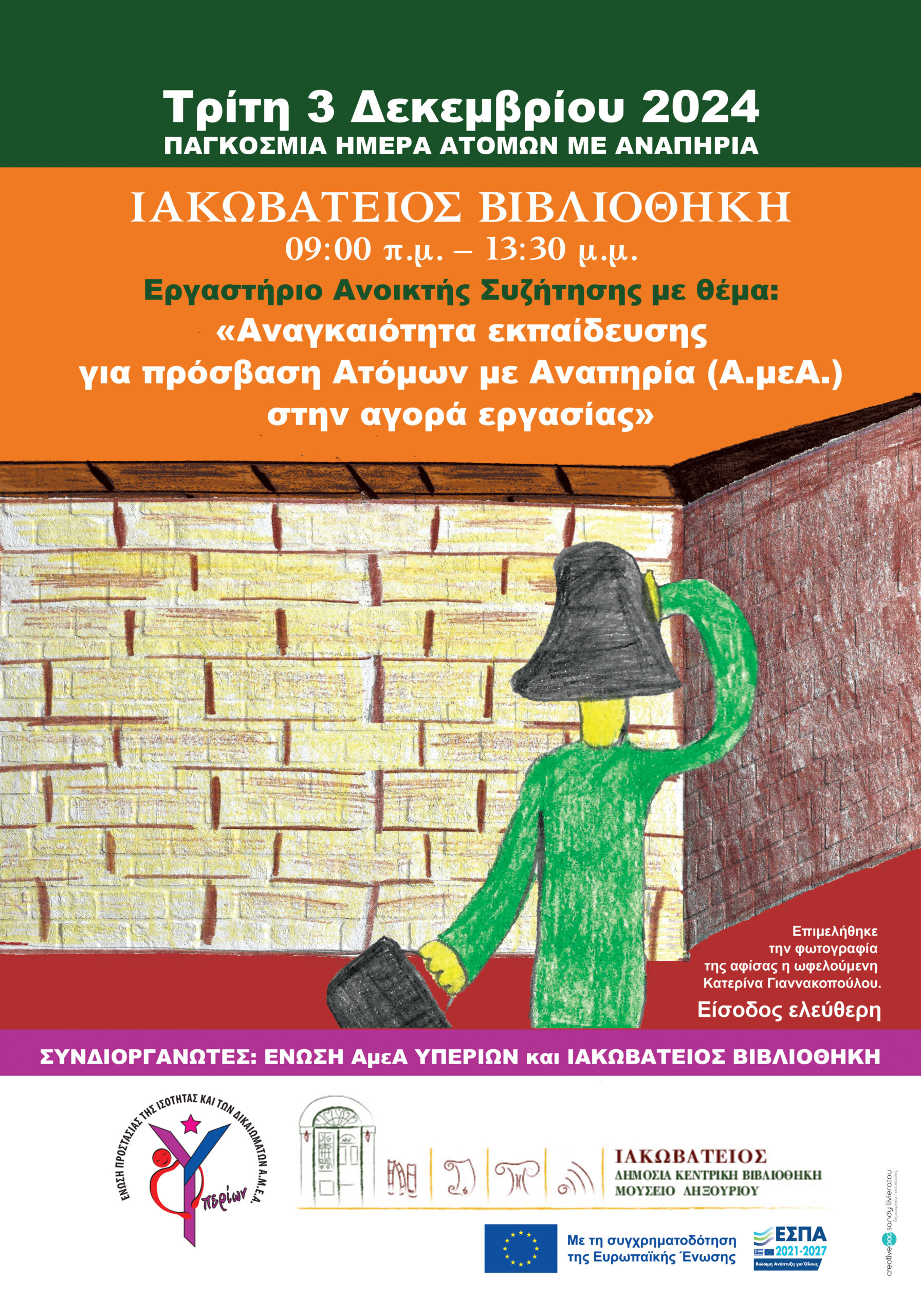 «Εργαστήριο ανοιχτής συζήτησης της Ένωσης ΑμεΑ «ΥΠΕΡΙΩΝ» σε συνεργασία με την Ιακωβάτειο Βιβλιοθήκη για την 3 Δεκέμβρη, Παγκόσμια Ημέρα ΑμεΑ “