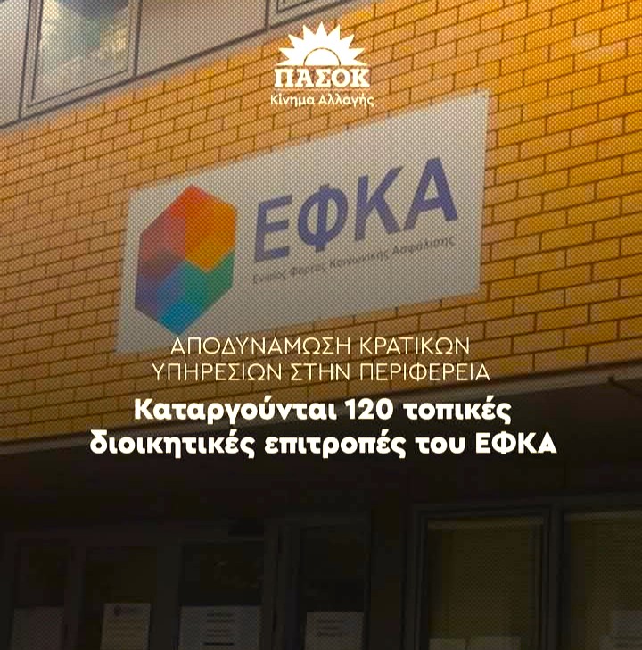 Η ΚΥΒΕΡΝΗΣΗ ΚΑΤΑΡΓΕΙ ΤΙΣ ΤΟΠΙΚΕΣ ΔΙΟΙΚΗΤΙΚΕΣ ΕΠΙΤΡΟΠΕΣ ΤΟΥ ΕΦΚΑ