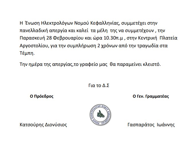 Και η Ηλεκτρολόγοι Συμμετέχουν στην Πανελλαδική Απεργία 28 2 25 25 Φεβρουαρίου 2025 Tweet Share Pin It Share Ακολουθήστε το voutospress.gr στο Google News και μάθετε πρώτοι όλες τις ειδήσεις ΤΟ ΒΗΜΑ ΤΗΣ ΕΝΩΣΗΣ ΗΛΕΚΤΡΟΛΟΓΩΝ ΝΟΜΟΥ ΚΕΦΑΛΛΗΝΙΑΣ Διονύσιος Βούτος Δημοσιογράφος 45 χρόνια στην δημοσιογραφία. Δημοσιογράφος ΕΡΤ Σχετικά Άρθρα Δήλωση του Πρωθυπουργού Κυριάκου Μητσοτάκη https://youtu.be/ivFkoZVAWz8?t=29 Νωρίτερα, ο κυβερνητικός εκπρόσωπος μιλώντας για την υπόθεση παρακολούθησης του κινητού του προέδρου του ΠΑΣΟΚ Νίκου… Παραμένει το Fortuna στην Costa με νέα ταξίδια στη Μεσόγειο Sakis Antoniou Ευχάριστη έκπληξη από την Carnival και Costa αφού ανακλήθηκε η απόφαση να αποχωρήσει… Την Κυριακή 15 Μαρτίου Ώρα 20:30 Δημοτικό Θέατρο Αργοστολίου “ο Κέφαλος” Η θεατρική παράσταση με τίτλο: "Στο εσωτερικό του Maurice Maeterlinck" Σύλληψη-Σκηνοθεσία: Ελένη Παργινού Η…
