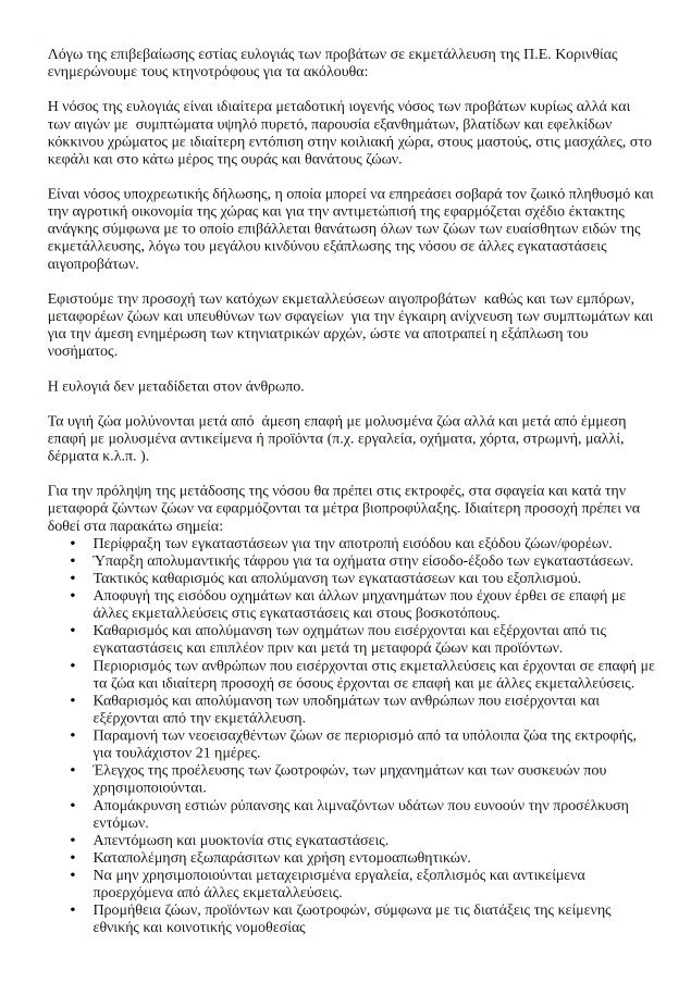 Η ανακοίνωση της Περιφέρειας Πελοποννήσου για την ευλογιά