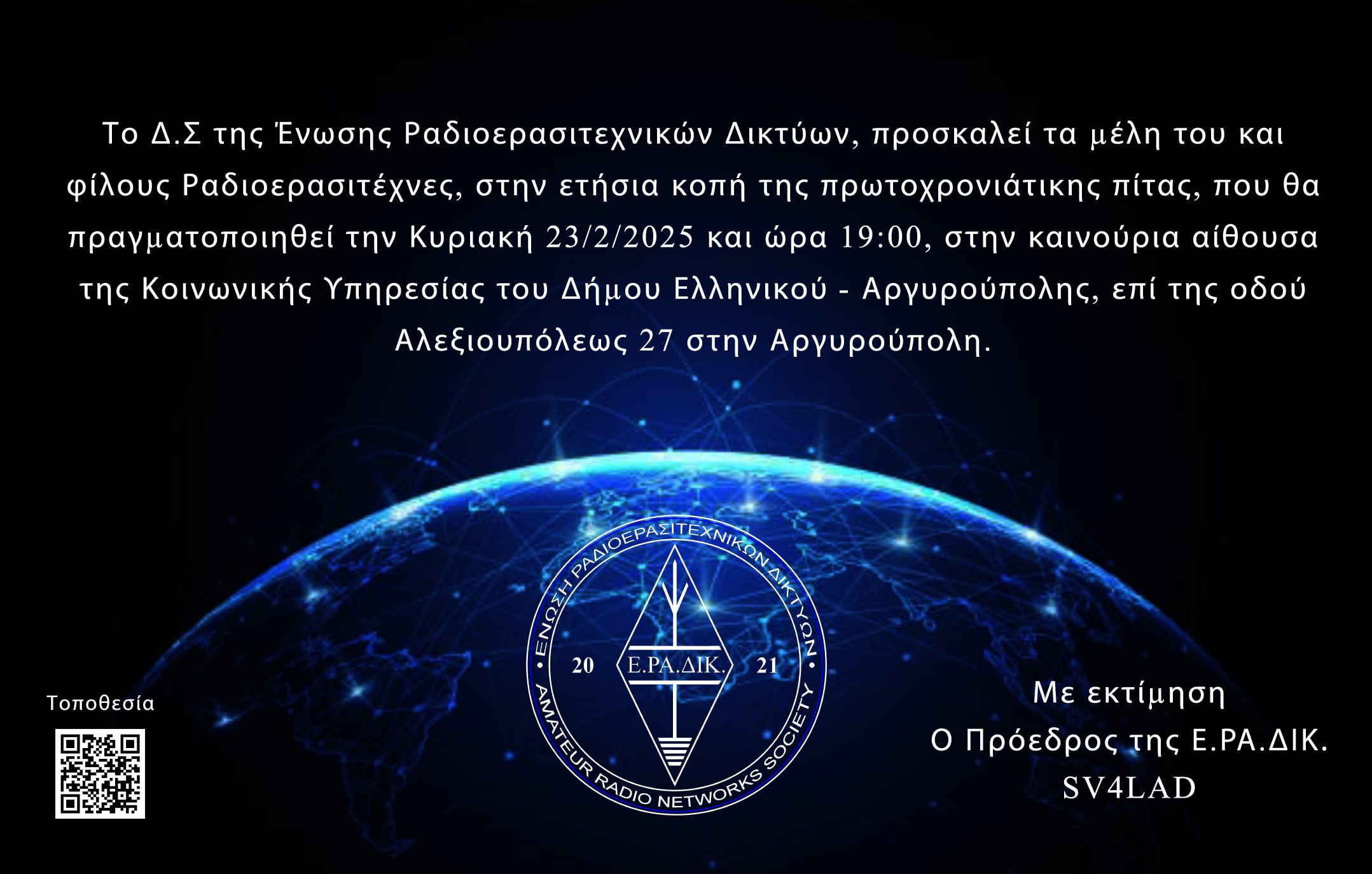 Είμαστε στην ευχάριστη θέση να σας προσκαλέσουμε στην ετήσια κοπή πίτας