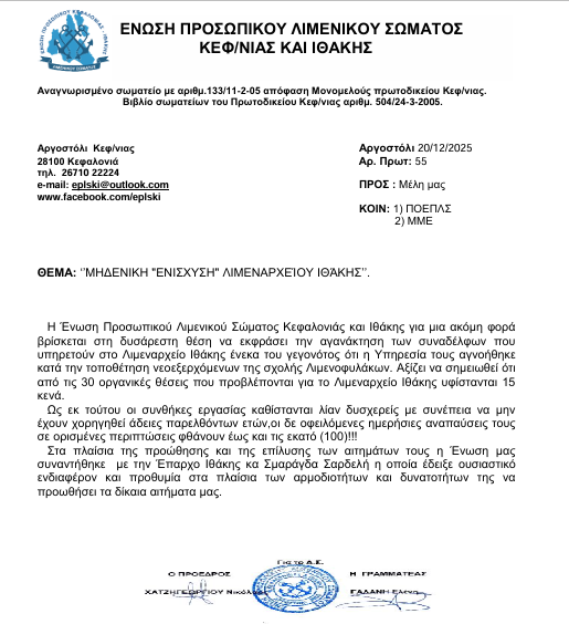 ΕΝΩΣΗ ΠΡΟΣΩΠΙΚΟΥ ΛΙΜΕΝΙΚΟΥ ΣΩΜΑΤΟΣ ΚΕΦ/ΝΙΑΣ ΚΑΙ ΙΘΑΚΗΣ ΕΝΩΣΗ ΠΡΟΣΩΠΙΚΟΥ ΛΙΜΕΝΙΚΟΥ ΣΩΜΑΤΟΣ ΚΕΦ/ΝΙΑΣ ΚΑΙ ΙΘΑΚΗΣ Αναγνωρισμένο σωματείο…