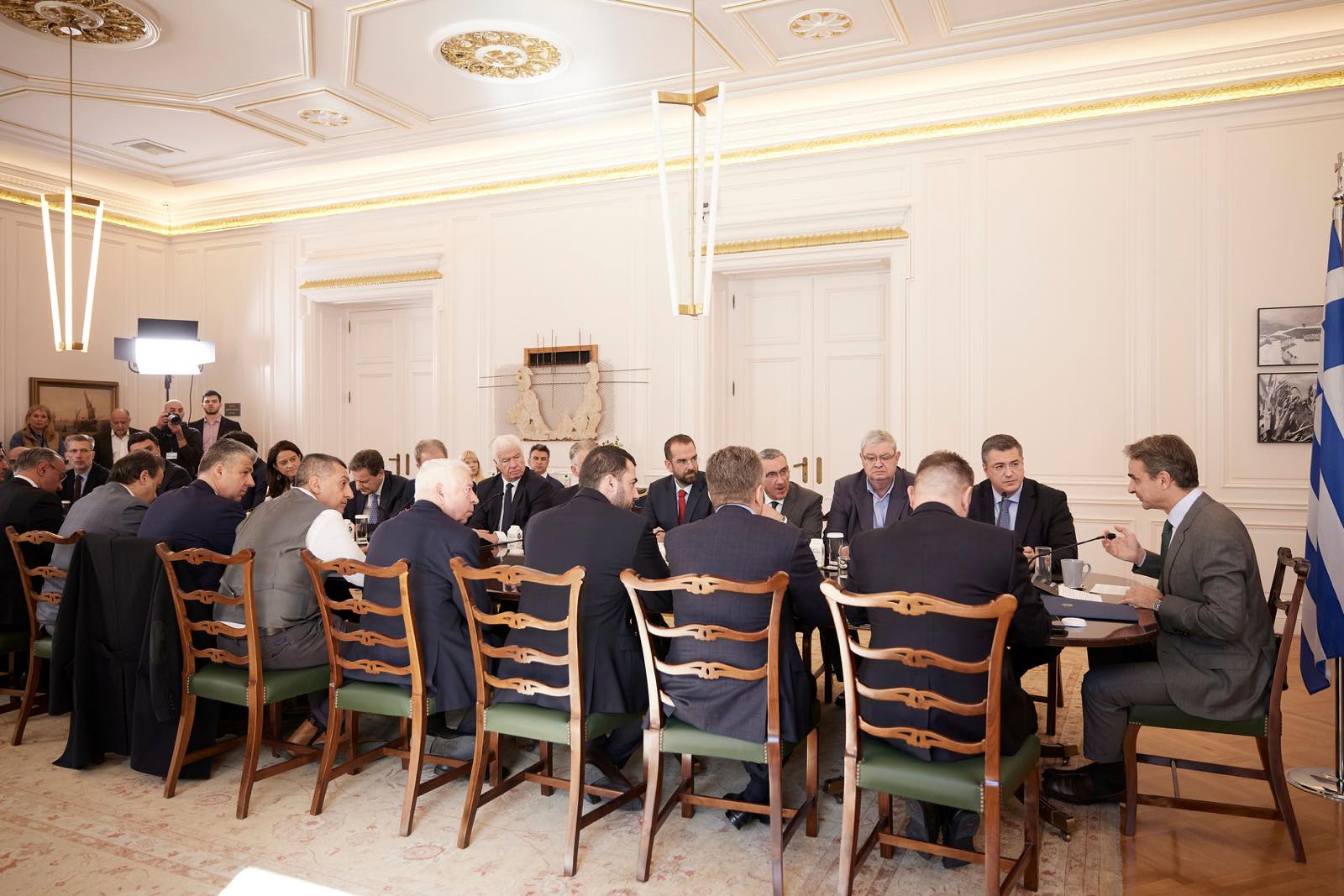 Το πρωί της Πέμπτης ο Περιφερειάρχης Ιονίων Νήσων κ. Γιάννης Τρεπεκλής συμμετείχε στη σύσκεψη που πραγματοποιήθηκε στο Μέγαρο Μαξίμου υπό την Προεδρεία του Πρωθυπουργού κ. Κυριάκου Μητσοτάκη και με την συμμετοχή των 13 Περιφερειαρχών της χώρας. Στην σύσκεψη παραβρέθηκε και πολυπληθές Κυβερνητικό κλιμάκιο.