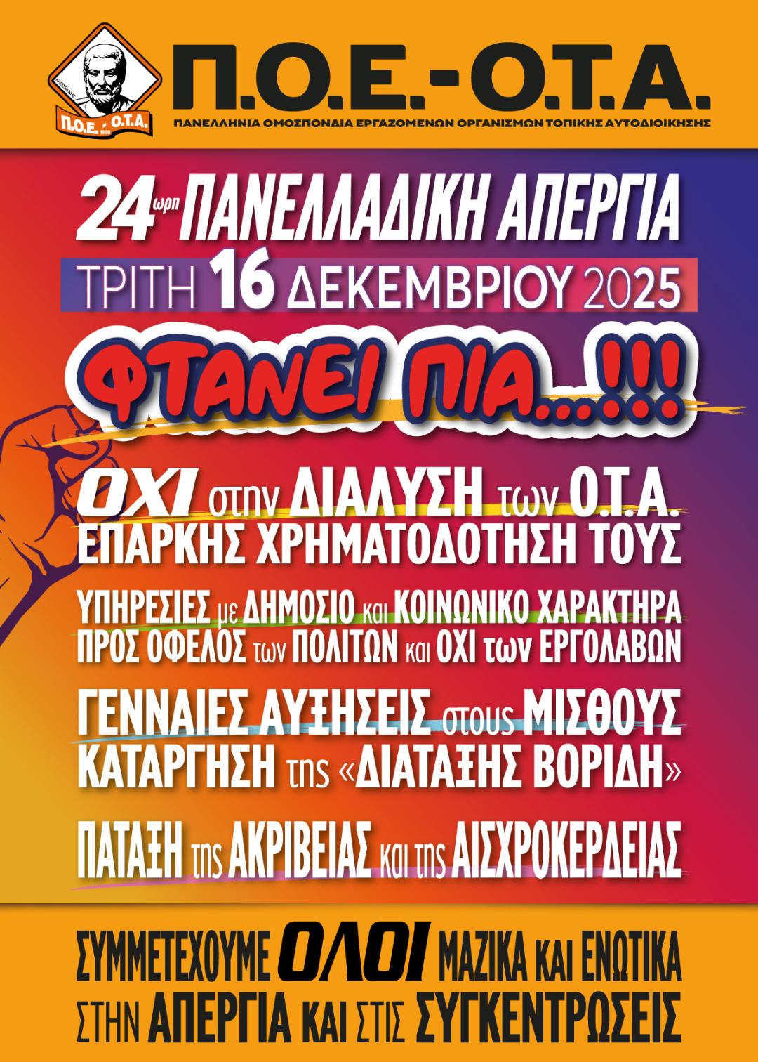 Π.Ο.Ε.-Ο.Τ.Α. ΓΙΑ ΤΗΝ 24ΩΡΗ ΠΑΝΕΛΛΑΔΙΚΗ ΑΠΕΡΓΙΑ (ΠΕΡΙΦΕΡΕΙΑ) ΤΗΝ ΤΡΙΤΗ 16 ΔΕΚΕΜΒΡΙΟΥ 2025. 6 Δεκεμβρίου 2025 Tweet Share Pin It Share Ακολουθήστε το voutospress.gr στο Google News και μάθετε πρώτοι όλες τις ειδήσεις ΤΟ ΒΗΜΑ ΤΗΣ ΠΟΕ ΟΤΑ Διονύσιος Βούτος Δημοσιογράφος 45 χρόνια στην δημοσιογραφία. Δημοσιογράφος ΕΡΤ Σχετικά Άρθρα Κεφαλονιά: Δωρεάν τηλεοπτικός εξοπλισμός για κανάλια εθνικής εμβέλειας ΠΡΟΣΒΑΣΗ ΜΟΝΙΜΩΝ ΚΑΤΟΙΚΩΝ ΠΕΡΙΟΧΩΝ ΕΚΤΟΣ ΤΗΛΕΟΠΤΙΚΗΣ ΚΑΛΥΨΗΣ ΣΤΟΥΣ ΕΛΛΗΝΙΚΟΥΣ ΤΗΛΕΟΠΤΙΚΟΥΣ ΣΤΑΘΜΟΥΣ Νόμος 4563/2018 – Κ.Υ.Α.… Κοπή Πιτας Κυνηγετικού Συλλόγου Αργοστολίου ΑΝΑΚΟΙΝΩΣΗ ΤΗΣ ΛΑΪΚΗΣ ΣΥΣΠΕΙΡΩΣΗ ΔΗΜΟΥ ΛΗΞΟΥΡΙΟΥ Κλείσιμο ΕΛΤΑ Ληξουρίου .«Το Τίμημα της ιδιωτικοποίησης και της Αδιαφορίας» Ένα ακόμη πλήγμα στο λαό…