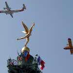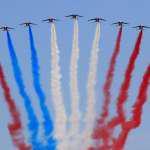 Τα απρόοπτα δεν έλειψαν από τη στρατιωτική παρέλαση: το ένα από τα εννέα Alphajet που θα σχημάτιζαν στον ουρανό τη γαλλική σημαία, έβγαλε κόκκινο και όχι μπλε καπνό.
