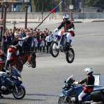 Το δεύτερο απρόοπτο σημειώθηκε ακριβώς μπροστά στην εξέδρα των επισήμων, όταν δύο μοτοσικλετιστές της αστυνομίας συγκρούστηκαν μεταξύ τους, ευτυχώς με χαμηλή ταχύτητα. Οι δύο αστυνομικοί εκτελούσαν φιγούρες, στο πλαίσιο μιας «χορογραφίας» στην οποία συμμετείχαν μοτοσικλέτες, άλογα και πεζοί στρατιώτες.