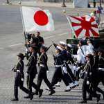 Σημαιοφόροι των δύο ασιατικών κρατών βρίσκονταν στην κεφαλή της παρέλασης, πλάι σε σημαιοφόρο που θα έφερε το γαλλικό εθνικό σύμβολο. Τους πλαισίωναν επτά στρατιώτες από κάθε εθνικότητα.