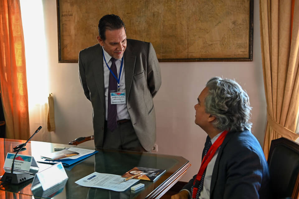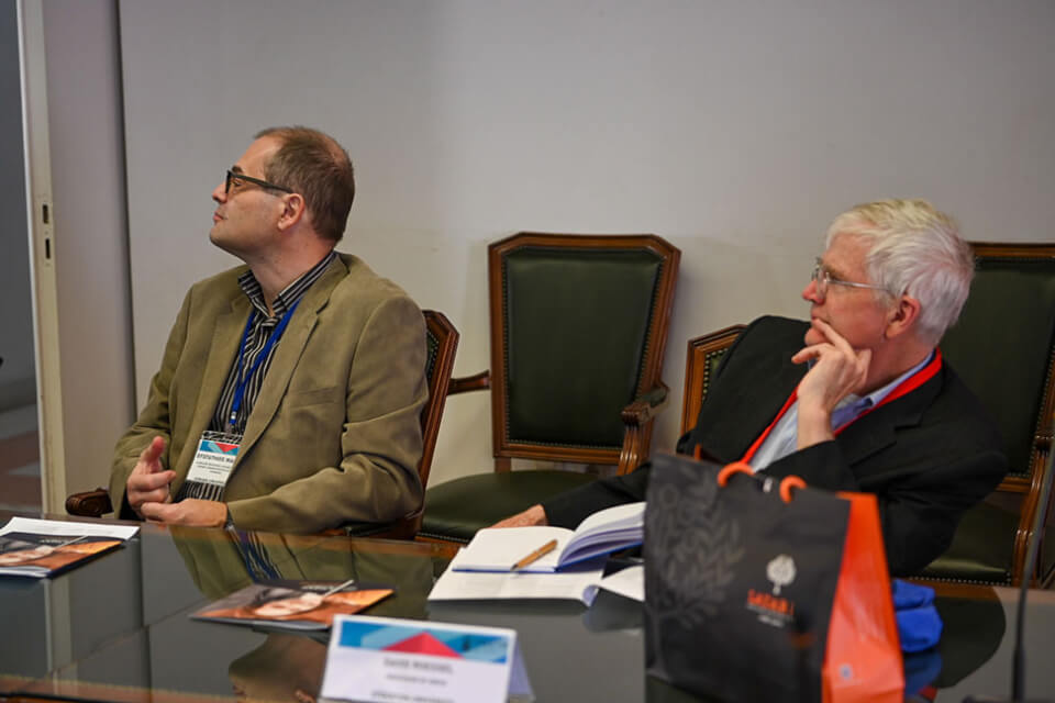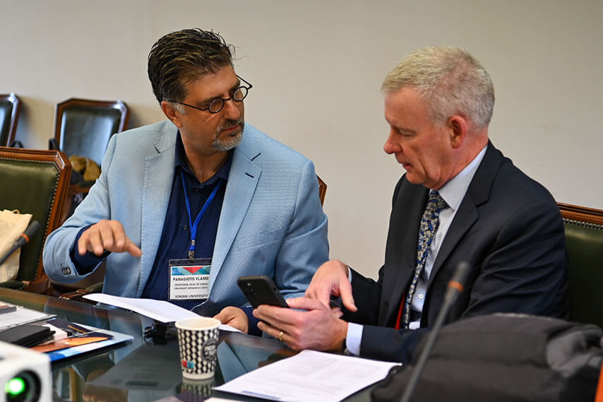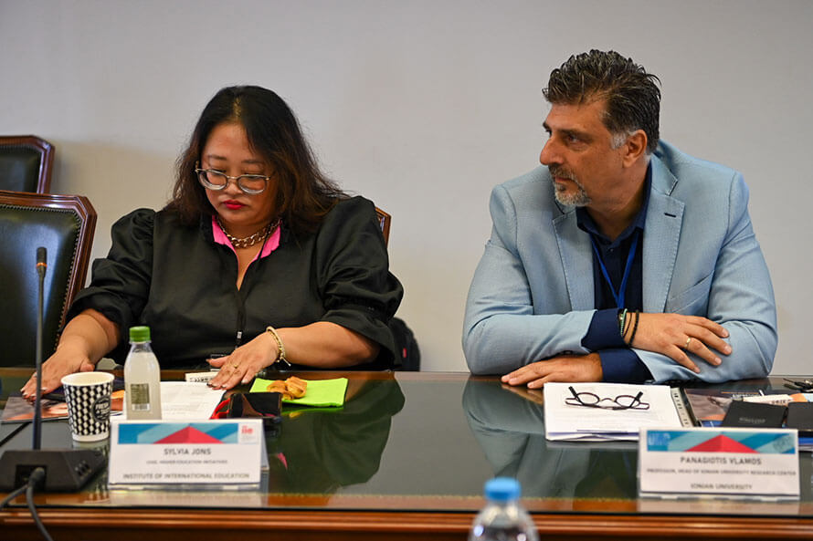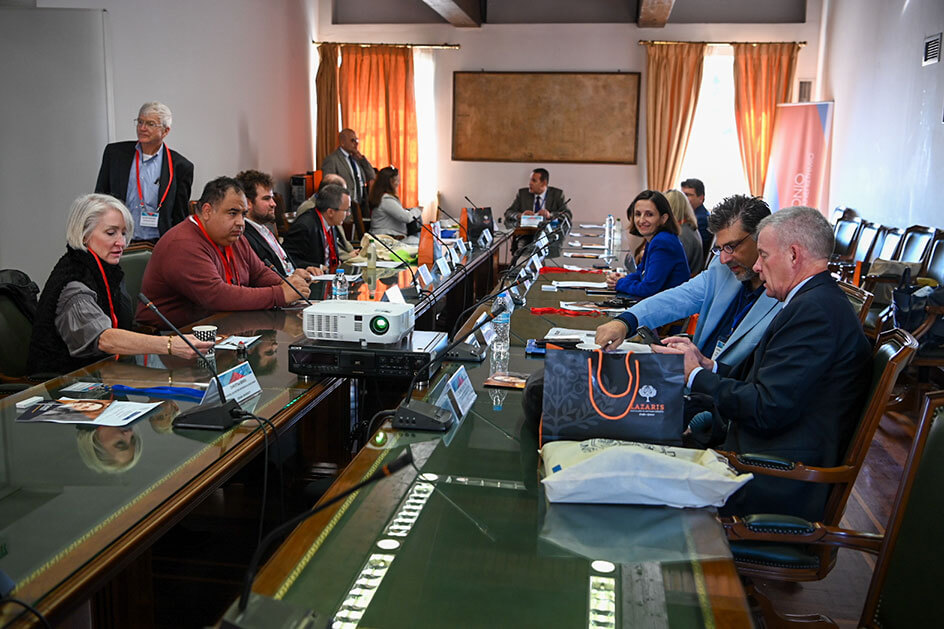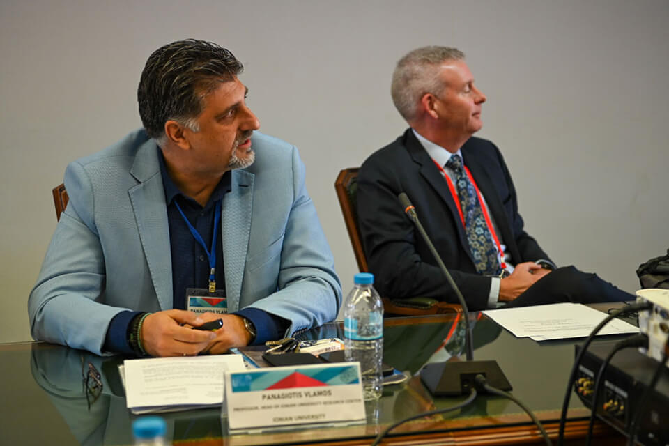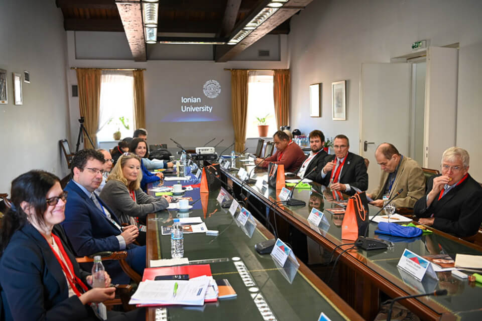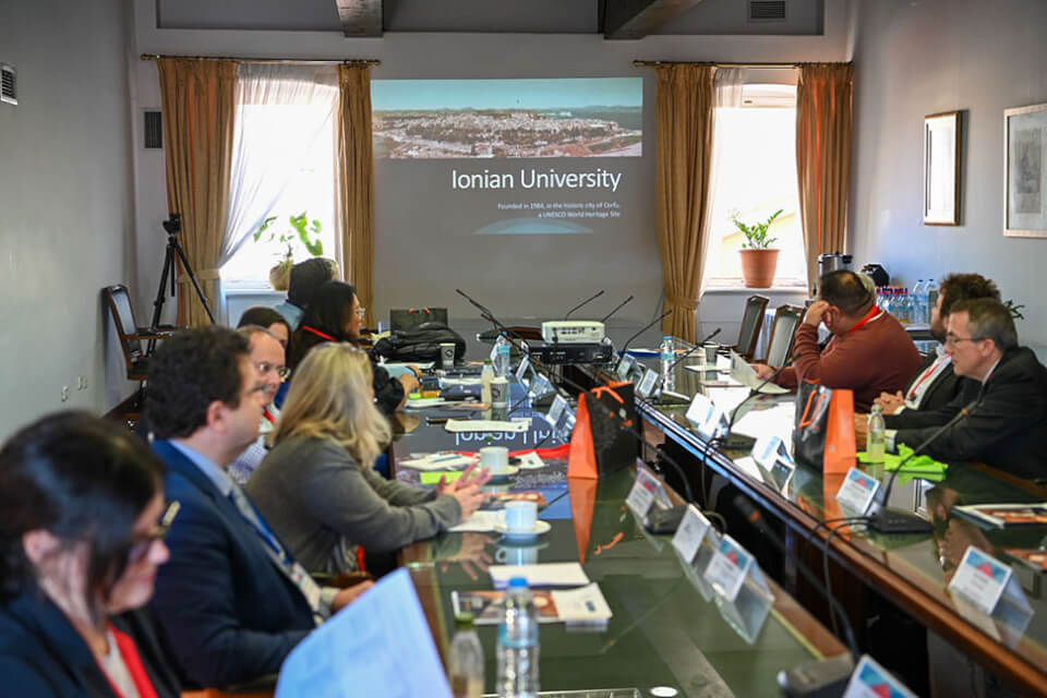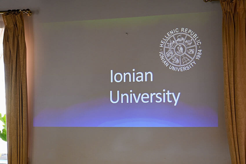 Τους εκπροσώπους των αμερικανικών Πανεπιστημίων υποδέχθηκε στο χώρο της Ιονίου Ακαδημίας ο Πρύτανης του Ιονίου Πανεπιστημίου, Καθηγητής Ανδρέας Φλώρος, ο οποίος παρουσίασε τα ιδιαίτερα χαρακτηριστικά της ακαδημαϊκής φυσιογνωμίας του Ιδρύματος, καθώς επίσης και το εύρος και την στοχοθεσία των διεθνών συνεργασιών του. Ακολούθησαν επιμέρους παρουσιάσεις από την Αντιπρύτανη Καθηγήτρια Κατερίνα Καμπάση αναφορικά με το προφίλ των σπουδών στα ακαδημαϊκά Τμήματα και από τον Πρόεδρο του Ερευνητικού Κέντρου του Ιονίου Πανεπιστημίου Καθηγητή Παναγιώτη Βλάμο σχετικά με την στρατηγική εκπόνησης διεπιστημονικής έρευνας.