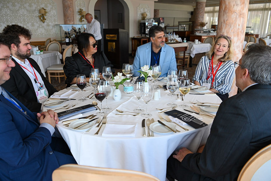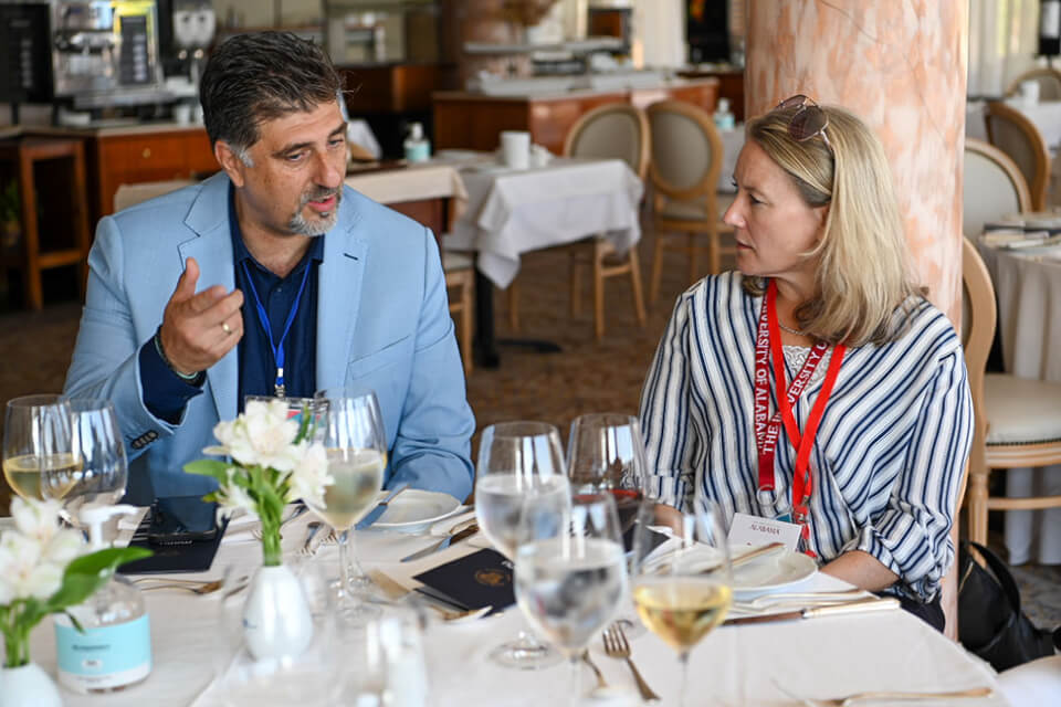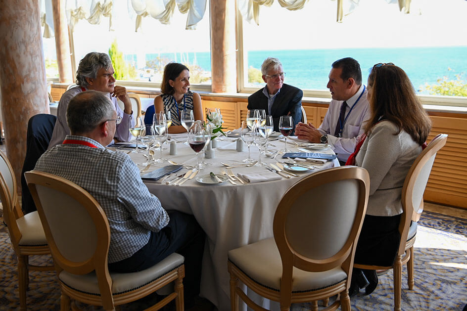 Στη συνέχεια, οι συμμετέχοντες στην συνάντηση είχαν τη δυνατότητα να συνομιλήσουν κατ’ ιδίαν με εκπροσώπους από όλα τα ακαδημαϊκά Τμήματα του Ιονίου Πανεπιστημίου, με αντικείμενο συζήτησης τις πιθανές συνεργασίες σε θέματα όπως η διοργάνωση κοινών μαθημάτων και σύντομων εκπαιδευτικών προγραμμάτων (π.χ. χειμερινά και θερινά σχολεία), την κινητικότητα του προσωπικού, αλλά και την συνέργεια σε ερευνητικά πεδία κοινού ενδιαφέροντος. Μετά το πέρας των συναντήσεων, οι εκπρόσωποι των αμερικανικών Πανεπιστημίων ξεναγήθηκαν σε χώρους του Ιδρύματος, με την επίσκεψη να ολοκληρώνεται με παράθεση γεύματος προς τιμήν τους.