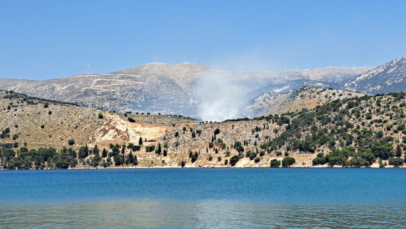 Ήχησε το 112 στην Κεφαλονιά, αναφορικά με την πυρκαγιά που βρίσκεται σε εξέλιξη πάνω από το νταμάρι.
