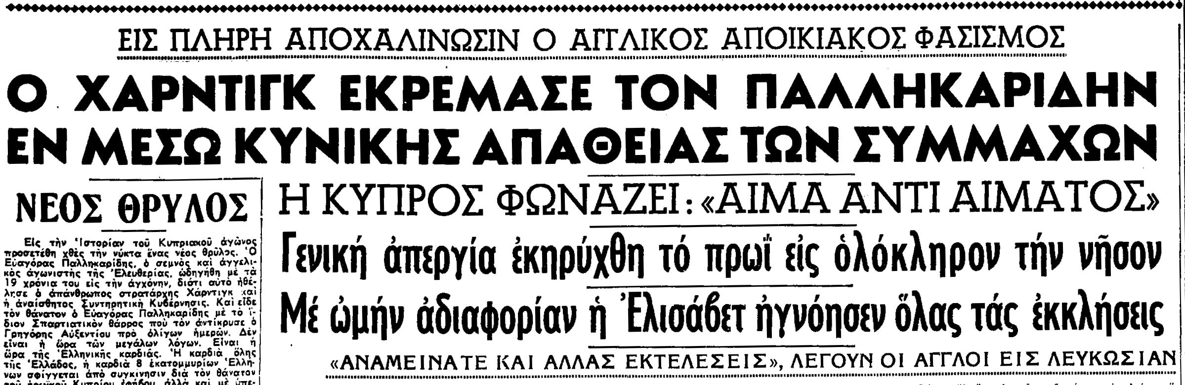 ΣΑΝ ΣΗΜΕΡΑ Ο ΗΡΩΑΣ ΕΥΑΓΟΡΑΣ ΠΑΛΛΗΚΑΡΙΔΗΣ ΑΠΑΓΧΟΝΙΖΕΤΑΙ ΑΠΟ ΤΟΥΣ ΑΓΓΛΟΥΣ ΔΥΝΑΣΤΕΣ…