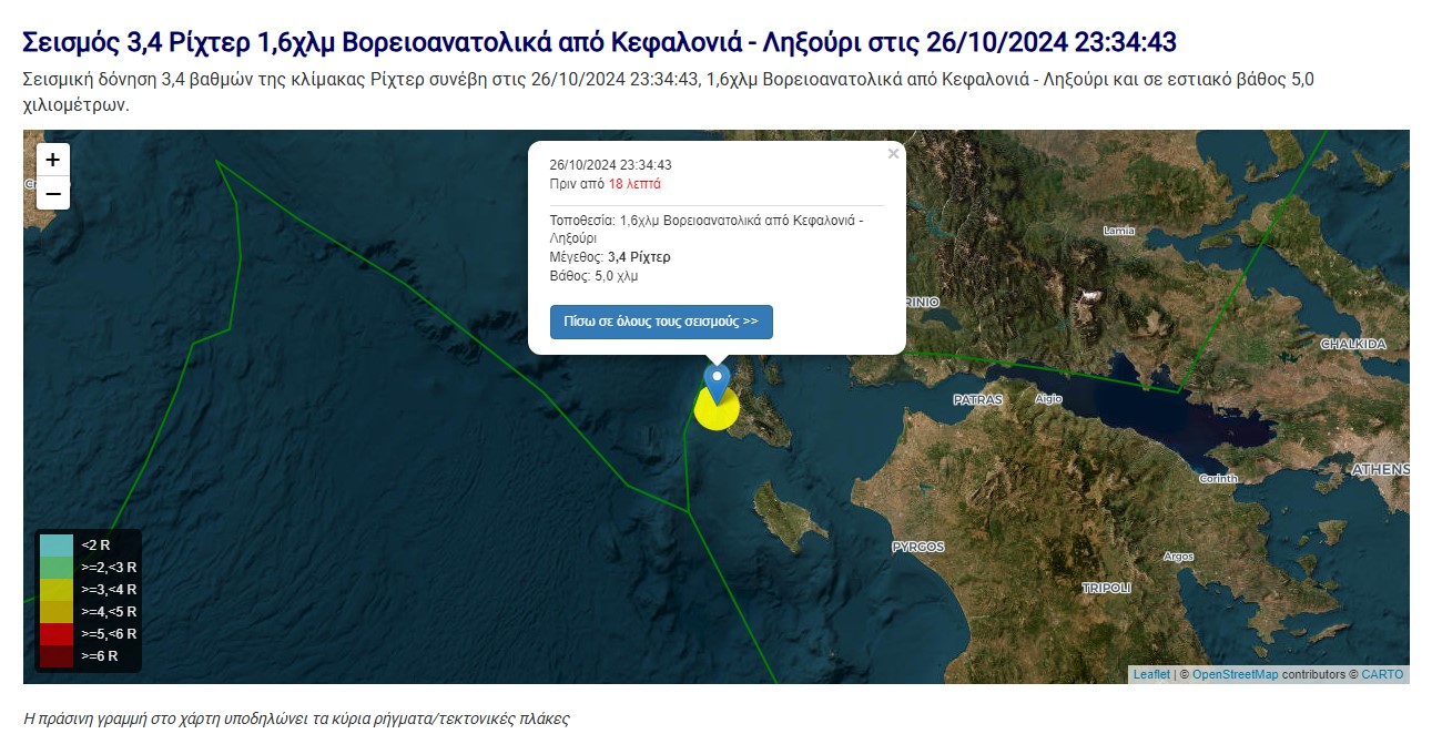 Σεισμός 3,4 Ρίχτερ στην Κεφαλονιά