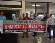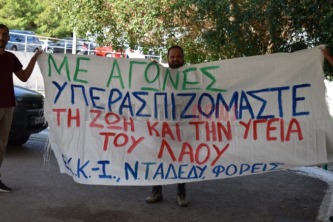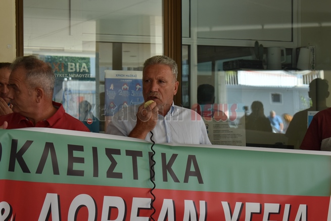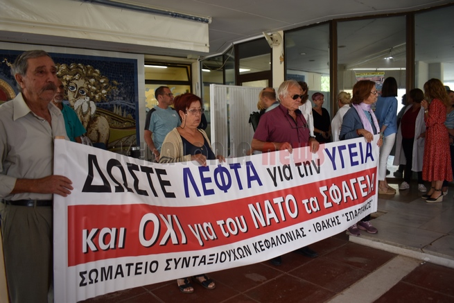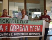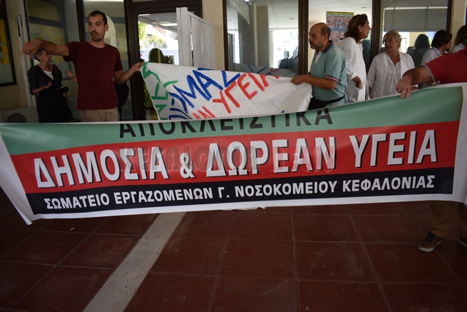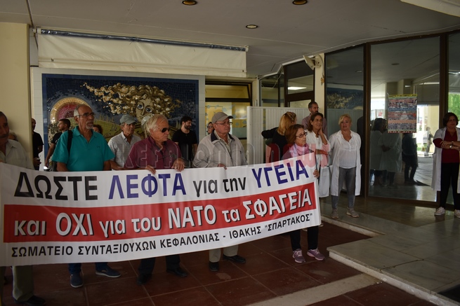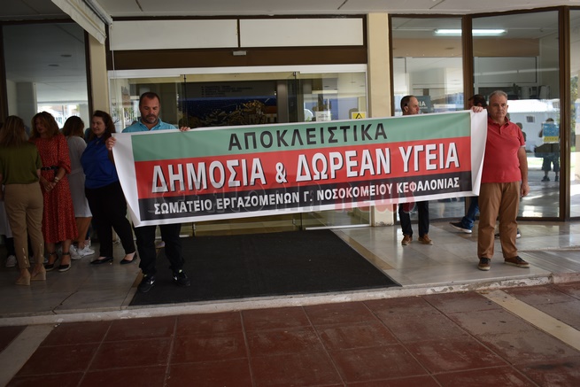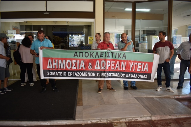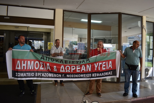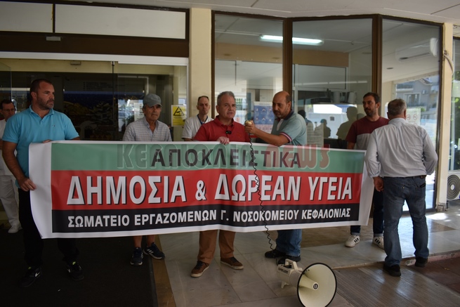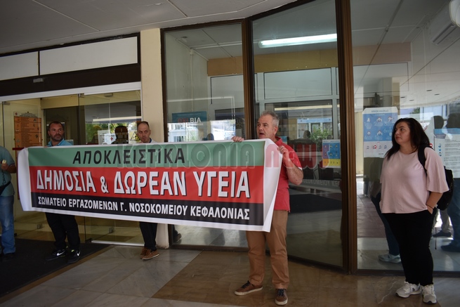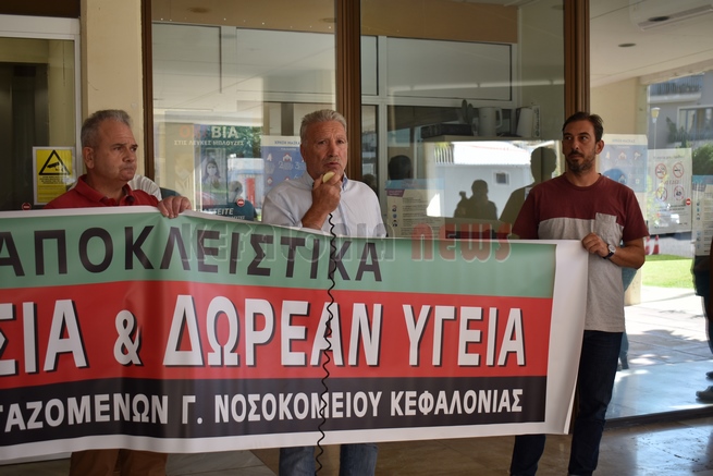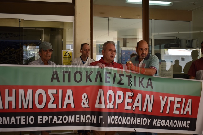 Συγκέντρωση έξω από το Νοσοκομείο για την Πανυγειονομική Απεργία της ΠΟΕΔΗΝ . Μίλησαν ο Πρόεδρος του Σωματείου Κώστας Τσιμάρας, ο Πρόεδρος της ΑΔΕΔΥ Κεφαλονιάς Δημ. Μαντζουράτος, εκ μέρους του Σωματείου Συνταξιούχων ο Π. Αλεξανδρόπουλος, από την Νοσηλευτική υπηρεσία του Νοσοκομείου ο Γερ. Παντελειός, εκ μέρους του Σωματείου ιδιωτικών Υπαλλήλων Ηλίας Καρόγλου και ο Πρόεδρος Του ΕΚΚΙ, Σπύρος Καμπίτσης. Παραβρέθηκε και ο Διοικητής του Νοσοκομείου κ. Δημ. Μαρτίνης.