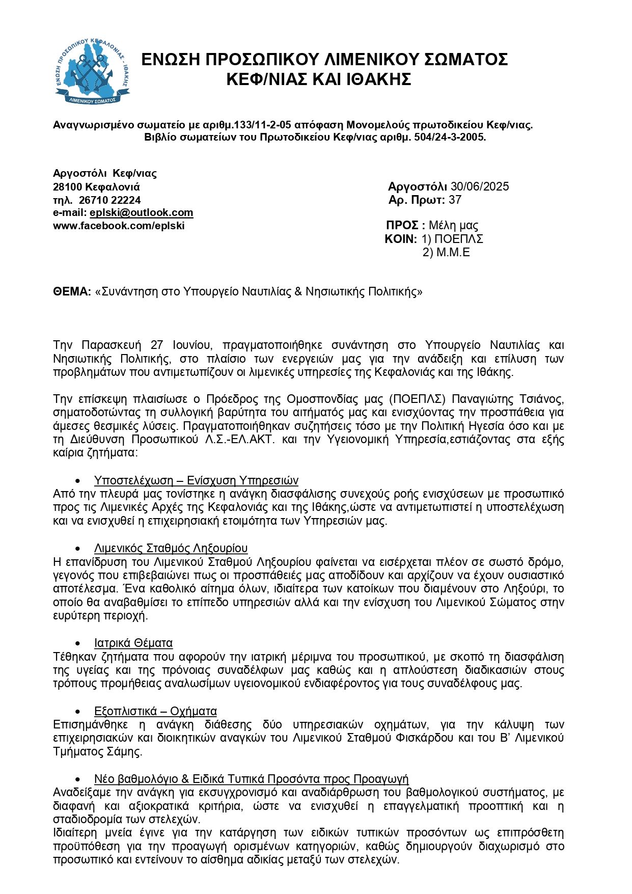 Συνάντηση στο Υπουργείο Ναυτιλίας & Νησιωτικής Πολιτικής 30 Ιουνίου 2025 Tweet Share Pin It Share Ακολουθήστε το voutospress.gr στο Google News και μάθετε πρώτοι όλες τις ειδήσεις ΤΟ ΒΗΜΑ ΤΗΣ ΕΝΩΣΗΣ ΠΡΟΣΩΠΙΚΟΥ ΛΙΜΕΝΙΚΟΥ ΣΩΜΑΤΟΣ ΚΕΦΑ/ΝΙΑΣ ΚΑΙ ΙΘΑΚΗΣ Διονύσιος Βούτος Δημοσιογράφος 45 χρόνια στην δημοσιογραφία. Δημοσιογράφος ΕΡΤ Σχετικά Άρθρα Εκπομπή το Βήμα του Πολίτη Ionian Galaxy 90,8 * voutospress.gr * fb * Instagram * YouTube * X Ας ακούσουμε τι μου είπε στην εκπομπή μου στο Βήμα του Πολίτη στο studio… Συνελήφθη ημεδαπός με Ευρωπαϊκό ένταλμα σύλληψης στην Κεφαλονιά Συνελήφθη χθες (15-01-2020) το πρωί στην Κεφαλονιά, από αστυνομικούς του Τμήματος Ασφαλείας Αργοστολίου, 30χρονος ημεδαπός,… Επαγγελματικός Λογαριασμός Το Επιμελητήριο Κεφαλονιάς-Ιθάκης σας ενημερώνει ότι έπιασαν τόπο οι πιέσεις από φορείς της αγοράς και…