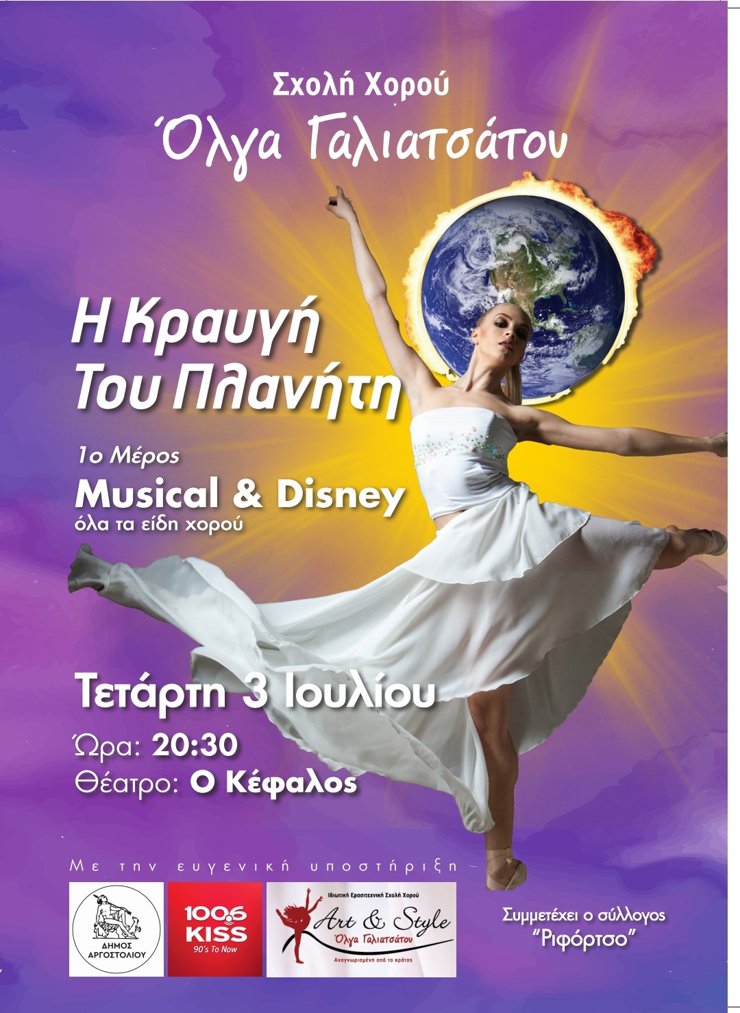 Την Τετάρτη 3 Ιουλίου στις 20:30 στο Δημοτικό Θέατρο Κέφαλος θα πραγματοποιηθεί η ετήσια χορευτική παράσταση της σχολής χορού “Art & Style” Dance School της Όλγας Γαλιατσάτου.