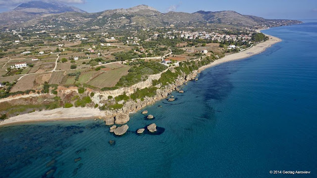 | Πανοραμική αεροφωτογραφία της παραλίας της Σκάλας. Αυτή είναι η πρώτη, νοτιότερη και πλησιέστερη ακτή της νήσου Κεφαλληνίας με τις ακτές της Πελοποννήσου. (photo : www.tripinview.com) https://www.tripinview.com/el?path=home |