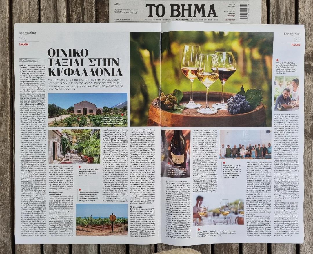 Αφιέρωμα στην εφημερίδα Το Βήμα την Κυριακή 12/1 για τον Σύνδεσμο Οινοποιών Κεφαλονιάς και τη διοργάνωση Kefalonia Wine Hub.